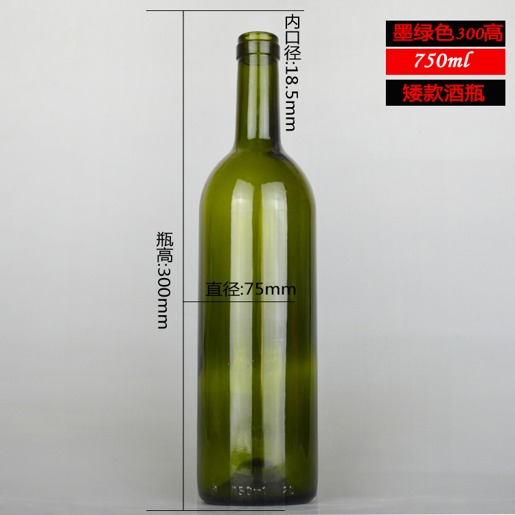 750ml 墨綠色紅酒瓶葡萄酒玻璃瓶